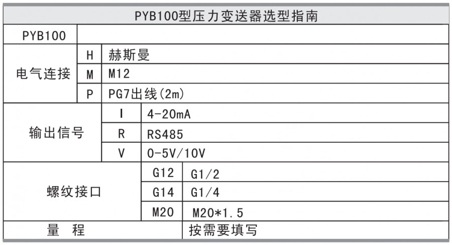 PYB100壓力變送器采用擴散硅壓力芯體做為敏感元件,選用全數(shù)字電路,整體性能穩(wěn)定可靠,可進行遠距離信號傳輸。全不銹鋼結(jié)構(gòu),安裝方便。具有極高的抗干擾和抗沖擊能力。廣泛應(yīng)用于氣動、液壓、供水、消防、環(huán)保、醫(yī)療等行業(yè)。