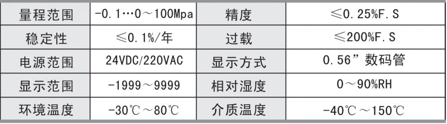 數(shù)字壓力表為全電子結(jié)構(gòu),前端采用帶隔離膜充油壓阻式壓力傳感器,輸出信號由高精度,低溫漂的放大器放大處理,送入高精度的A/D轉(zhuǎn)換器,轉(zhuǎn)換成微處理器可以處理的數(shù)字信號,經(jīng)過運算處理,由LED顯示器顯示出實際的壓力值。 該智能數(shù)顯壓力表使用靈活,操作簡單,調(diào)試容易,安全可靠。廣泛應(yīng)用于水電,自來水,石油,化工,機械,液壓等行業(yè),對流體介質(zhì)的壓力進行測量顯示。