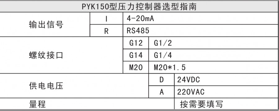 PYK150智能壓力控制器是集壓力測量、顯示、輸出、五路控制于一體的智能數(shù)字壓力測控產(chǎn)品。不銹鋼接頭、擴(kuò)散硅壓力芯體、全數(shù)字電路板組成,顯示直觀,操作簡單,安全可靠,開關(guān)點(diǎn)現(xiàn)場設(shè)置。廣泛應(yīng)用于水電、自來水,石油、化工、機(jī)械、液壓等行業(yè),對流體介質(zhì)的壓力進(jìn)行測量和控制,并可遠(yuǎn)傳輸出(4-20mA)及RS485組網(wǎng)。