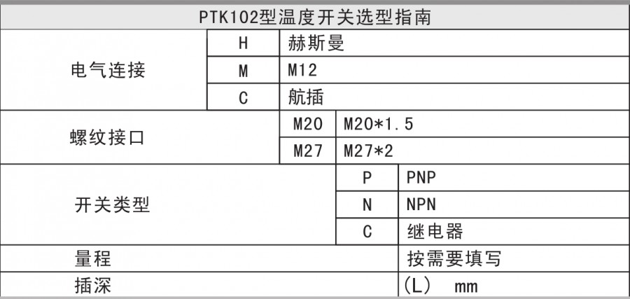 PTK102智能數(shù)字溫度開關(guān)是集溫度測量、顯示、輸出、控制于一體的智能數(shù)字溫度測控產(chǎn)品。不銹鋼接頭、高精度PT100、全數(shù)字電路板組成,顯示直觀,操作簡單,安全可靠,開關(guān)點現(xiàn)場設(shè)置。廣泛應(yīng)用于水電、自來水,石油、化工、機械、液壓等行業(yè),對流體介質(zhì)的溫度進行測量和控制。